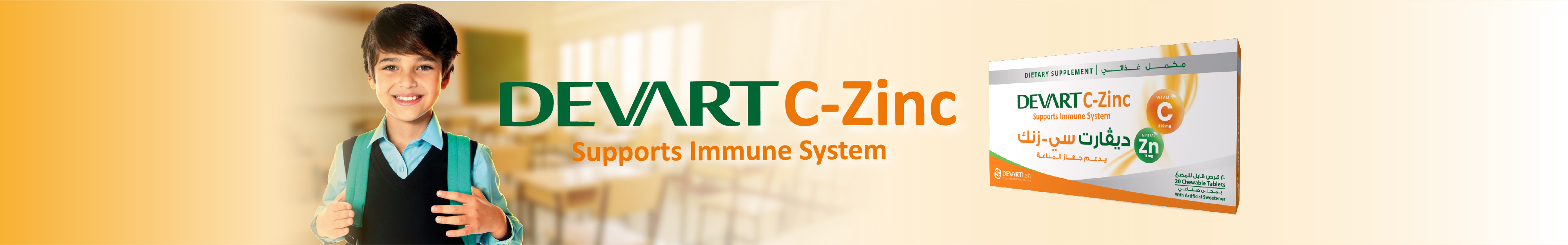 DEVART C-Zinc Provide the First & The only Daily Dose of Zinc Bisglycinate (11 mg Highly Bioavailable Zinc) plus 250 mg of Vitamin C in Tasty Chewable Tablet with orange Flavor